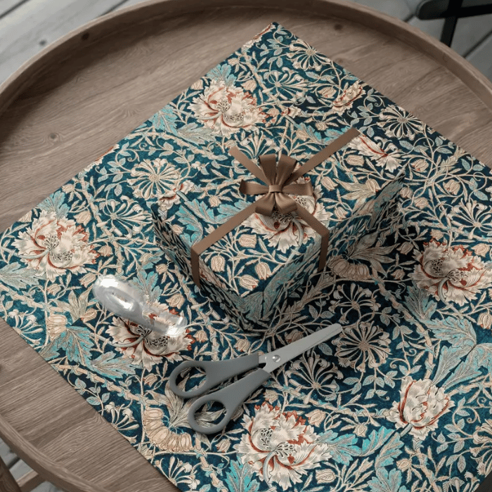 Elegant Blue Honeysuckle Pattern Gift Wrap Paper, Vintage Art Nouveau Design, Available in 3 Sizes, Perfect for Christmas and Special Occasions